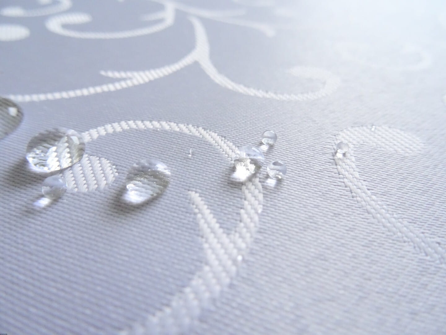 Dzięki pokryciu plamoodpornemu rozlane płyny nie wnikają w głąb tkaniny, tylko tworzą na powierzchni obrusu krople, które łatwo można zebrać.Wysoka jakość i doskonała struktura tkania.