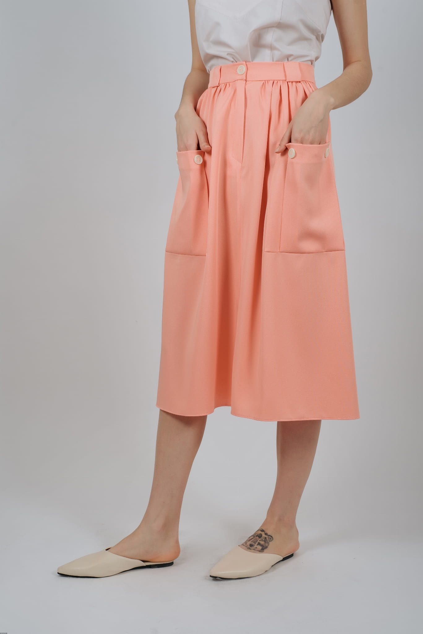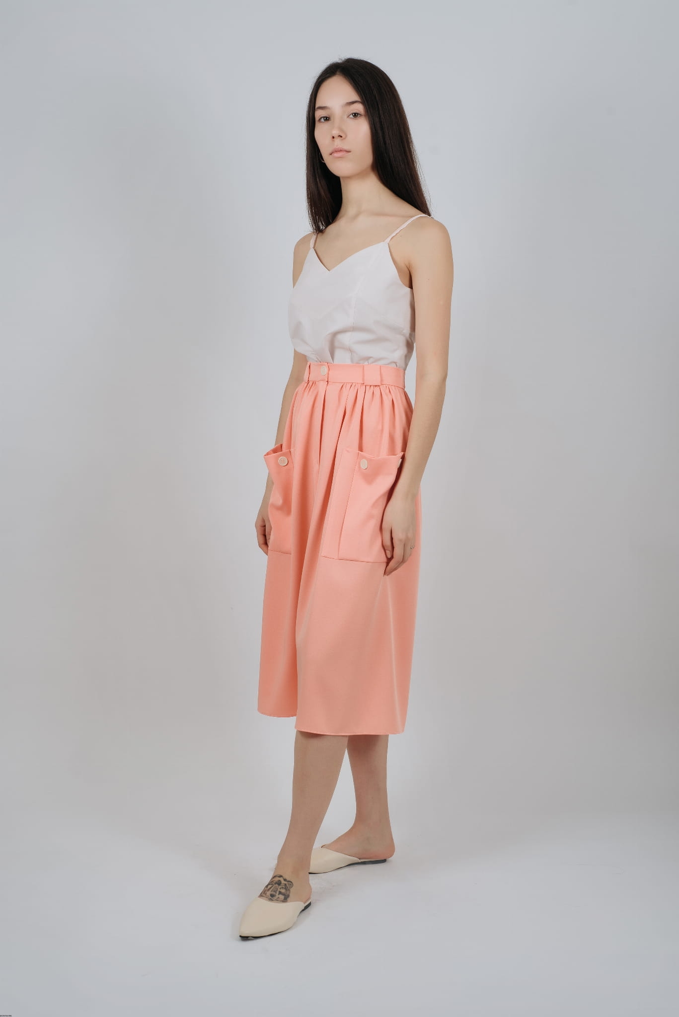 Spódnica damska na lato pomarańczowa z powrotem na pasku z wielkimi odwagami.
