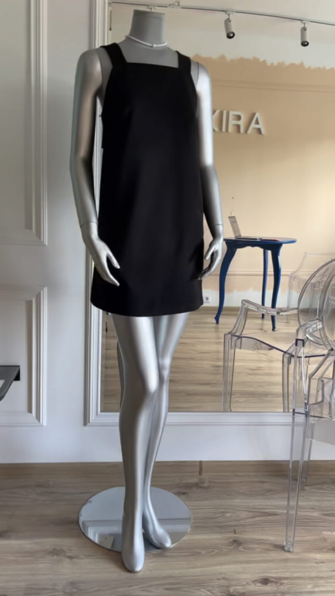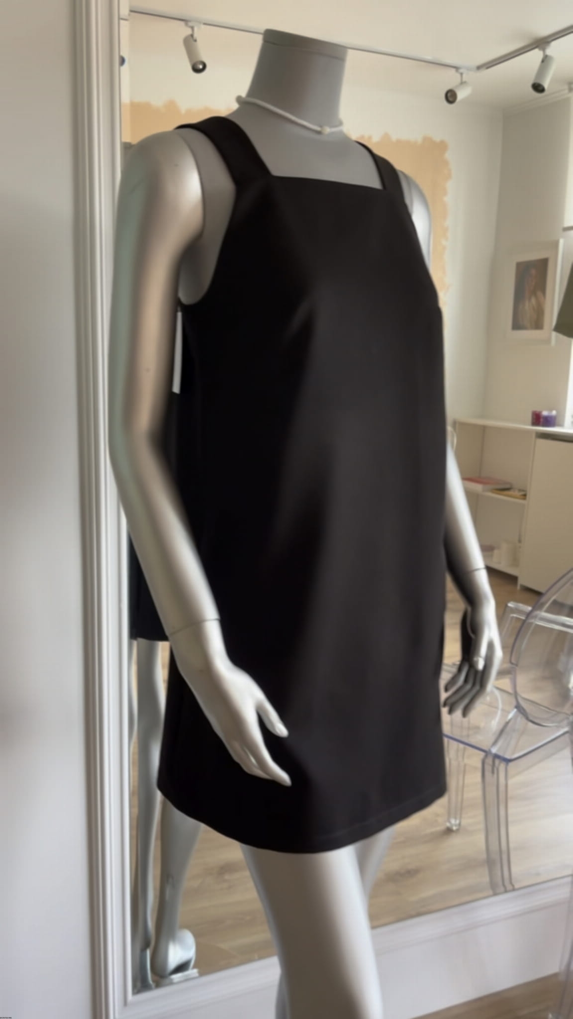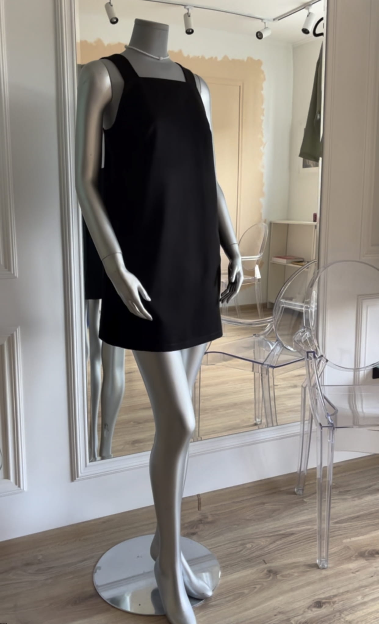 Czarna sukienka o długości mini.