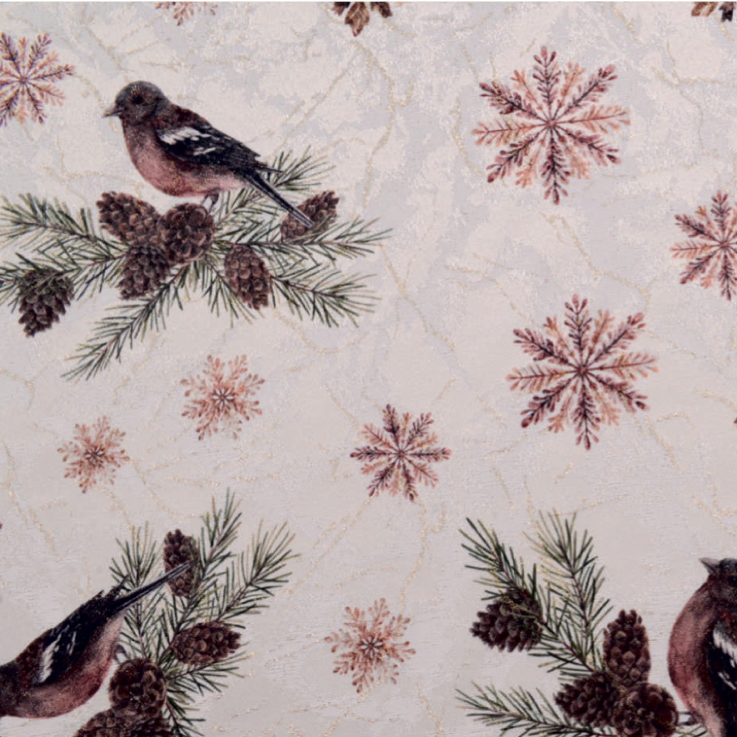 Wzór / Pattern: świąteczny – śnieżynki, ptaszki, szyszki